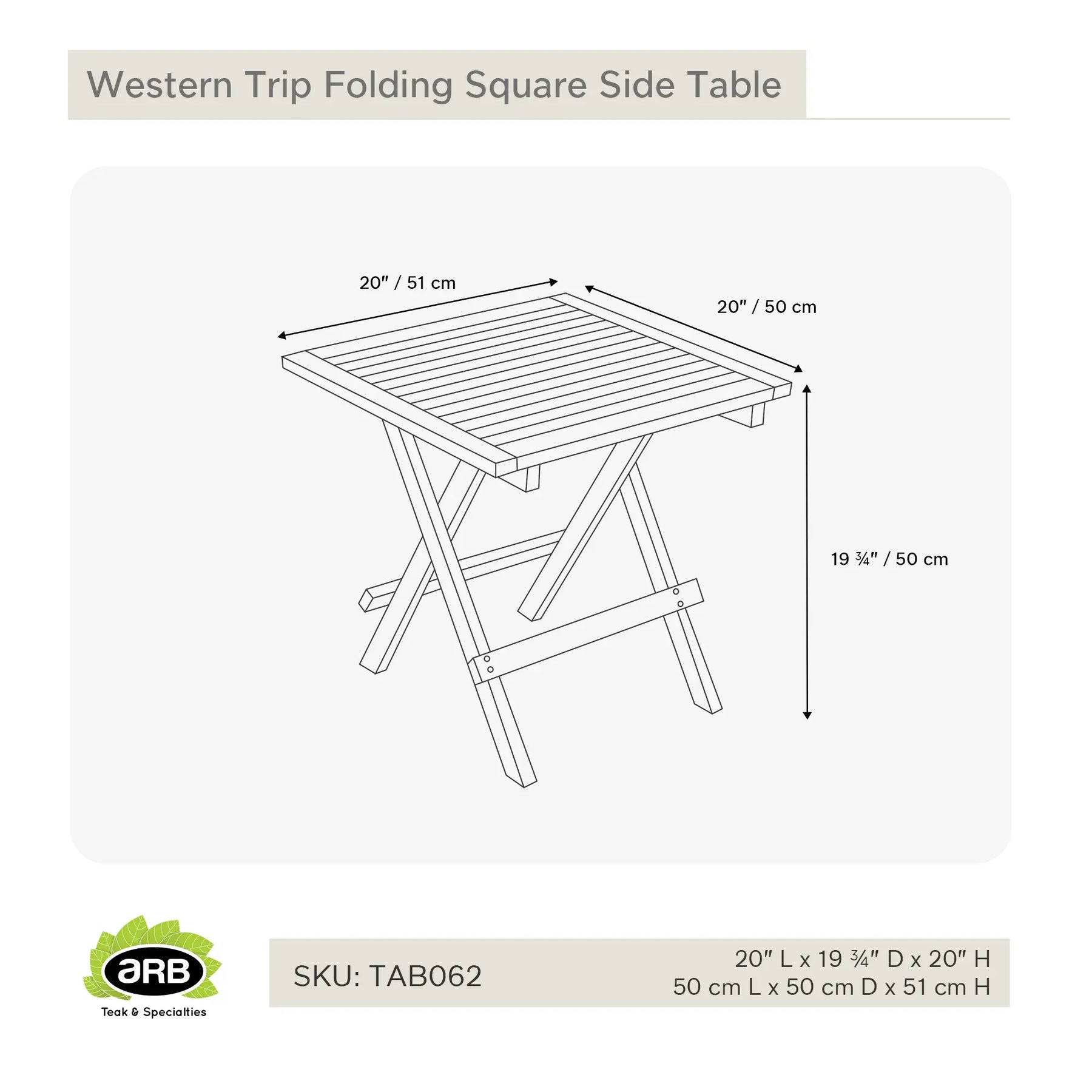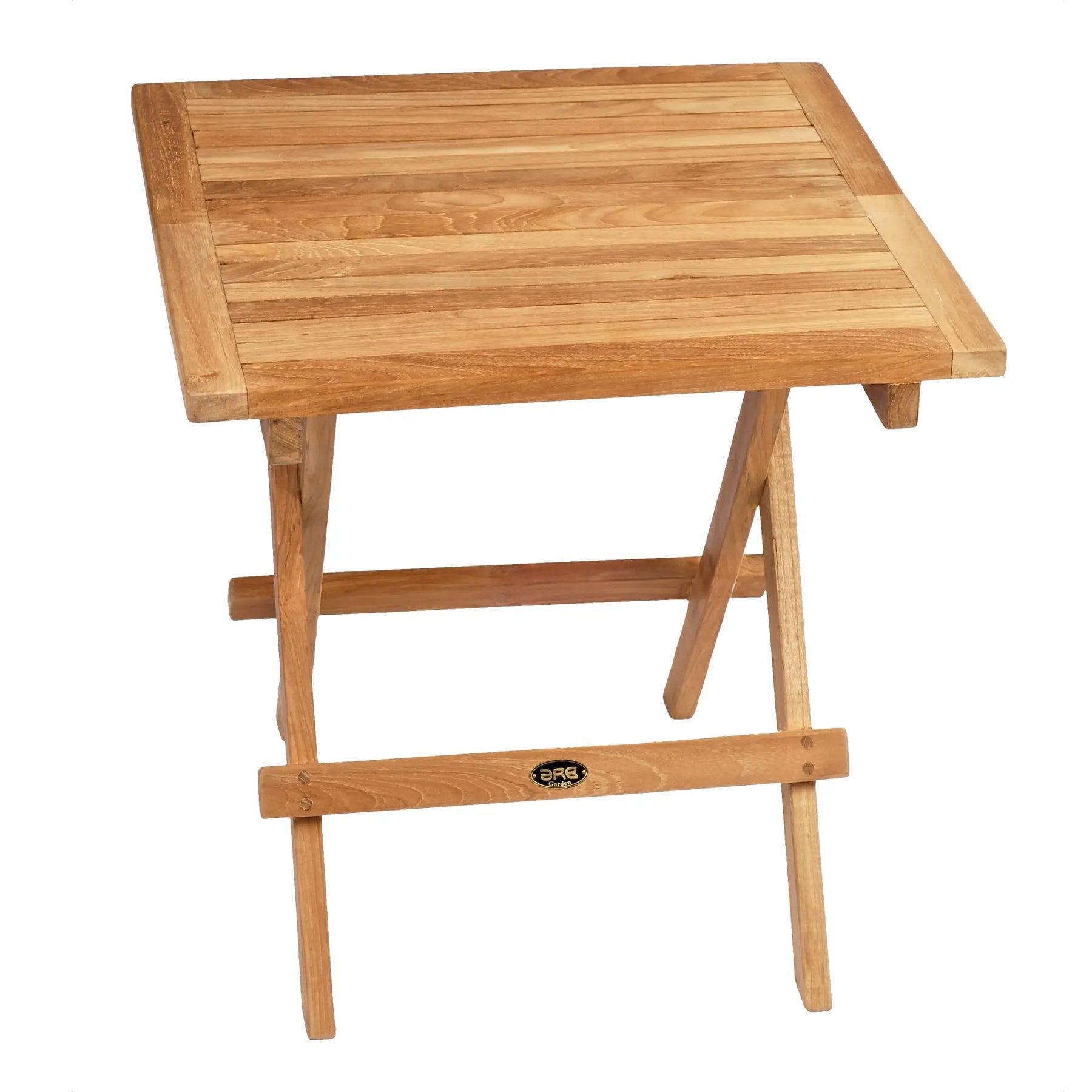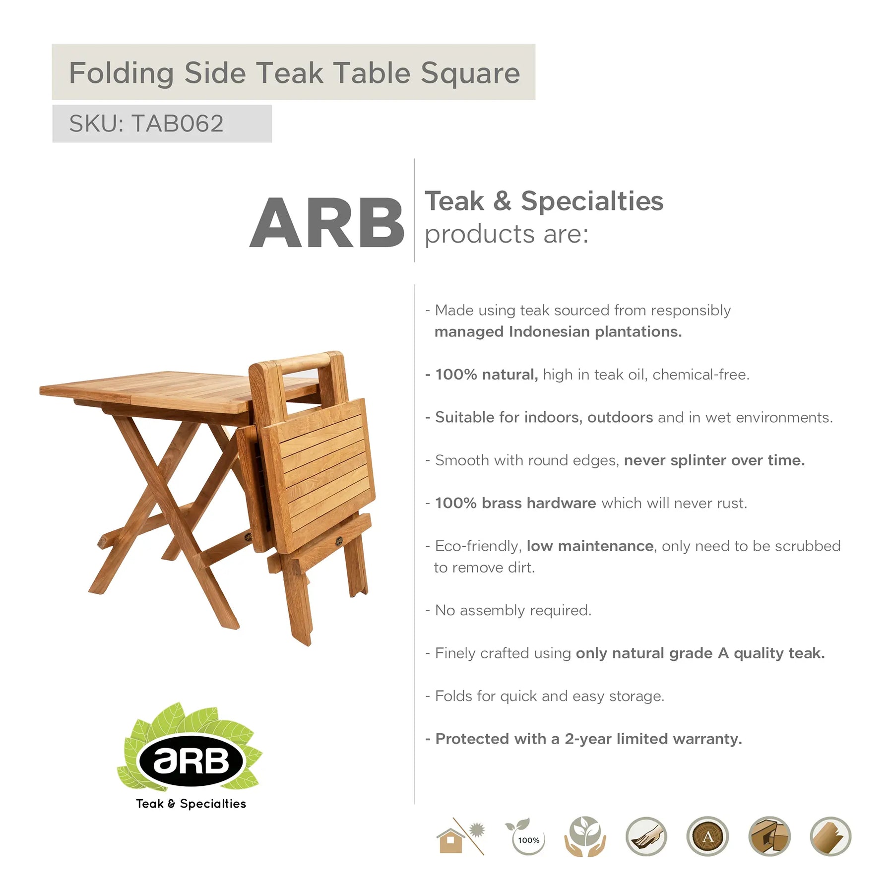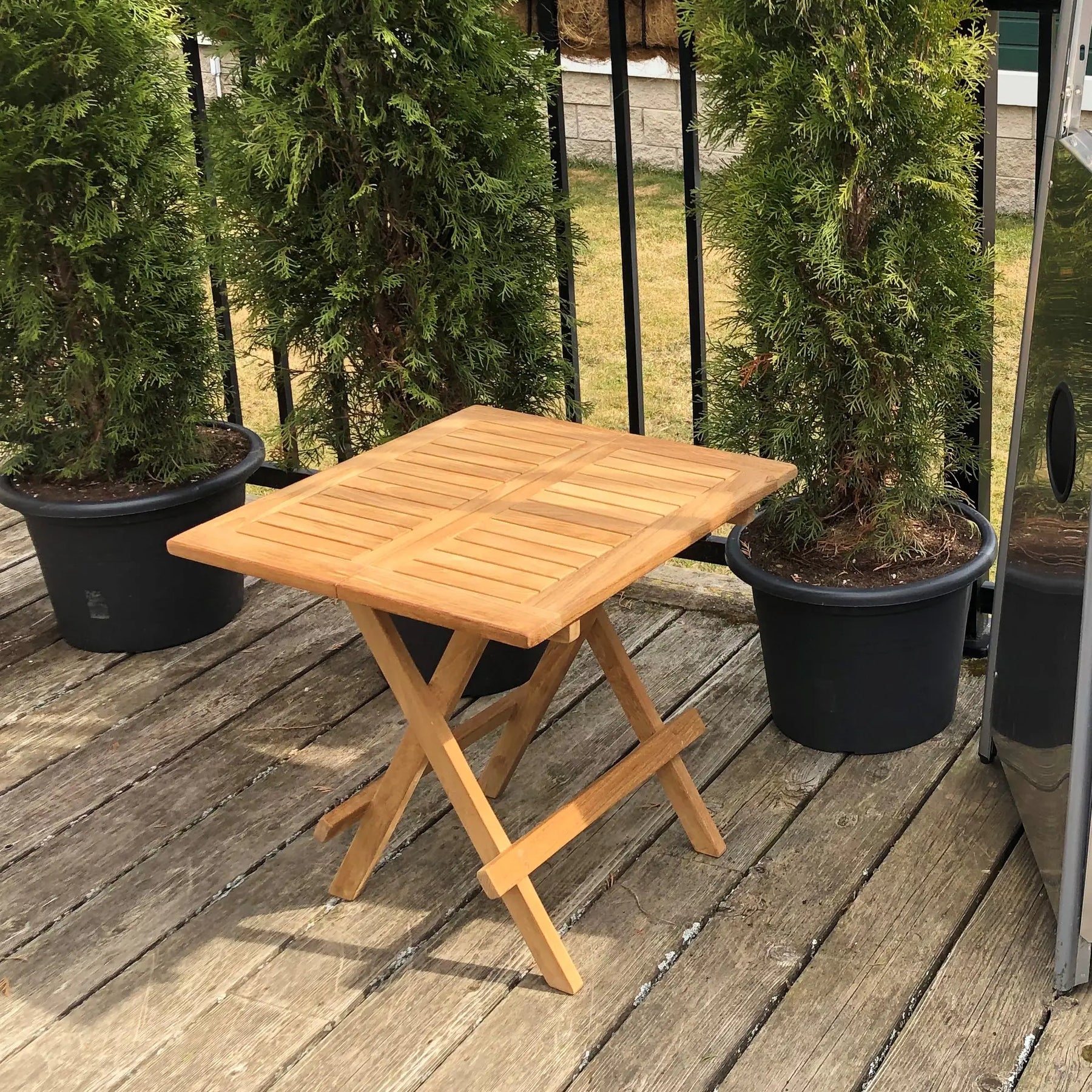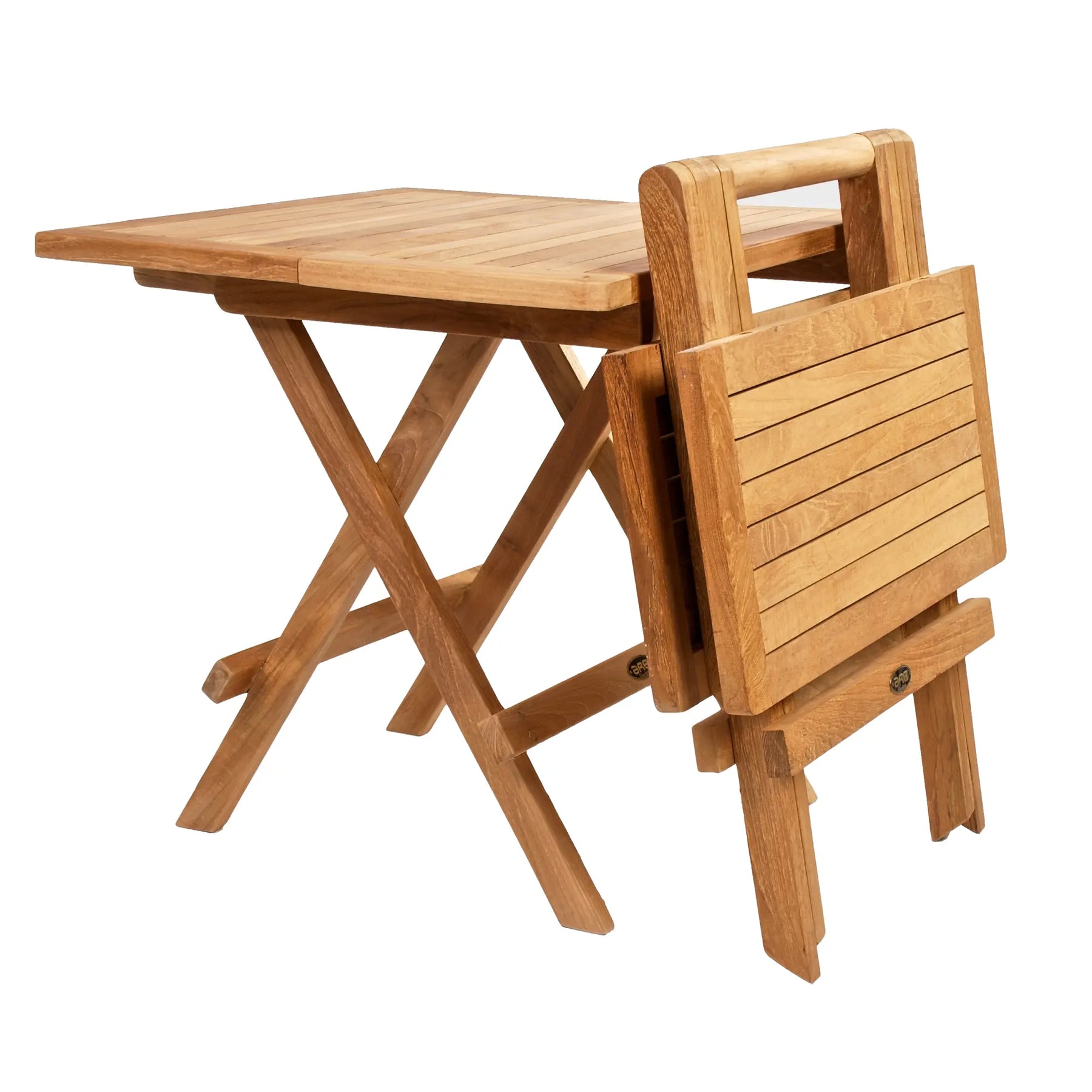• One (1) Teak Folding Side Table, Two (2) Teak Folding Chairs, One (1) Teak Tray with X-Stand