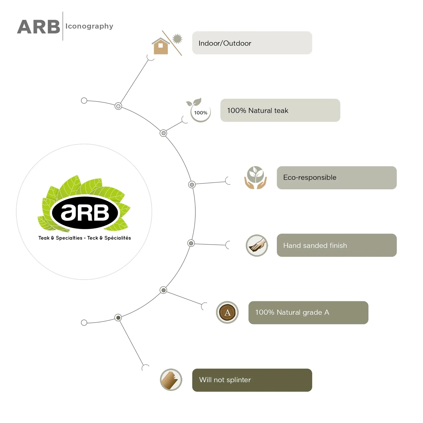 We use legal wood sanctioned by the Indonesian Government and harvested at Perum Perhutani plantations to manufacture our products. In these plantations, teak trees are grown specifically for furniture fabrication, following strict forest development plans and reforestation programs without harming other vegetation.