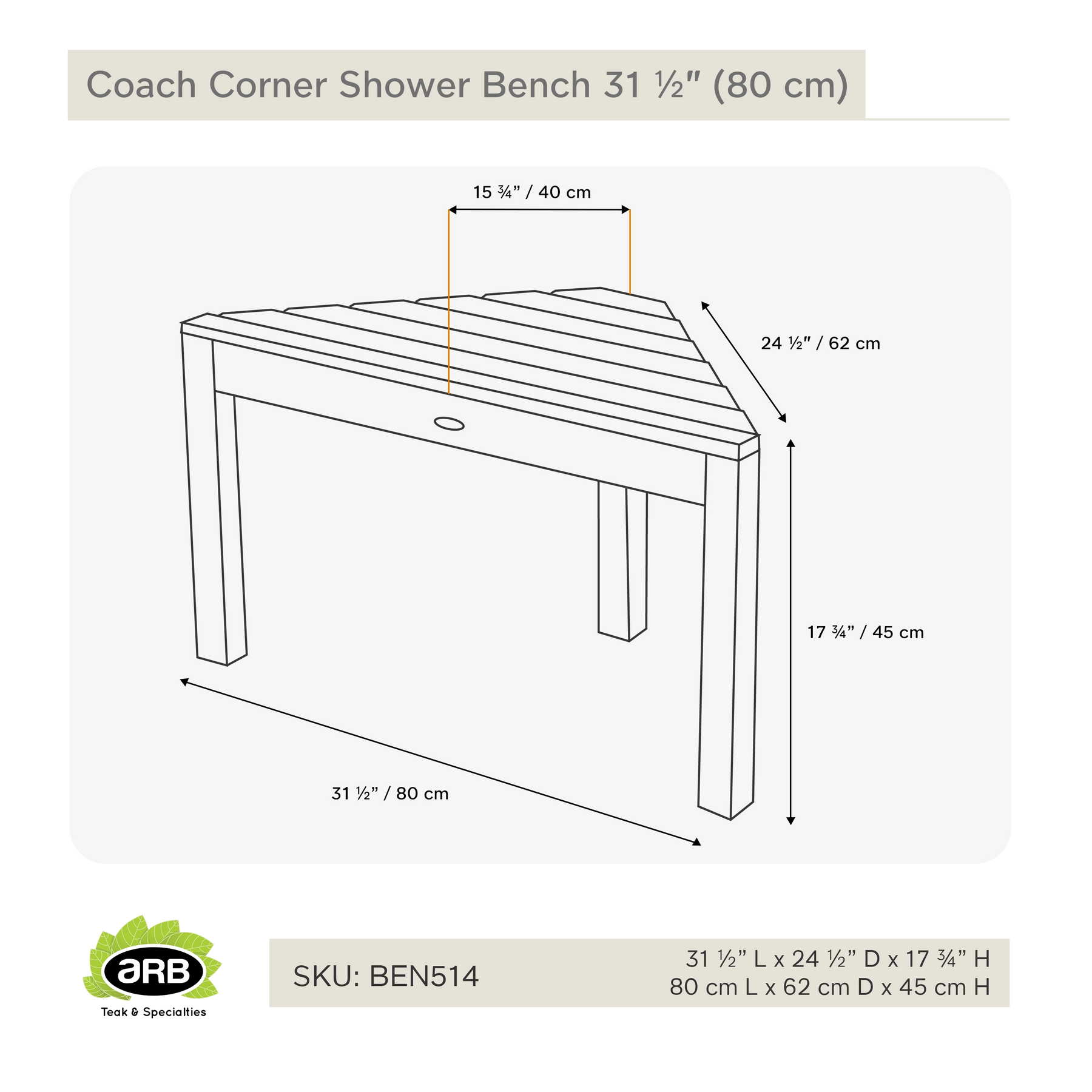 El banco de ducha de esquina ARB TEAK Coach es la combinación ideal de diseño y gracias a sus bordes redondeados, se ajusta perfectamente al espacio.